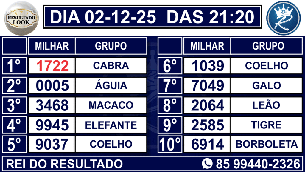 Aqui mesmo nesta página você encontra o resultado ao vivo de todos os horários citados acima. Aliás, para facilitar, organizamos os números de forma simples e objetiva. Portanto, sempre que precisar conferir sua aposta, basta acessar esta página inicial e visualizar os resultados da Look Goiás em tempo real.