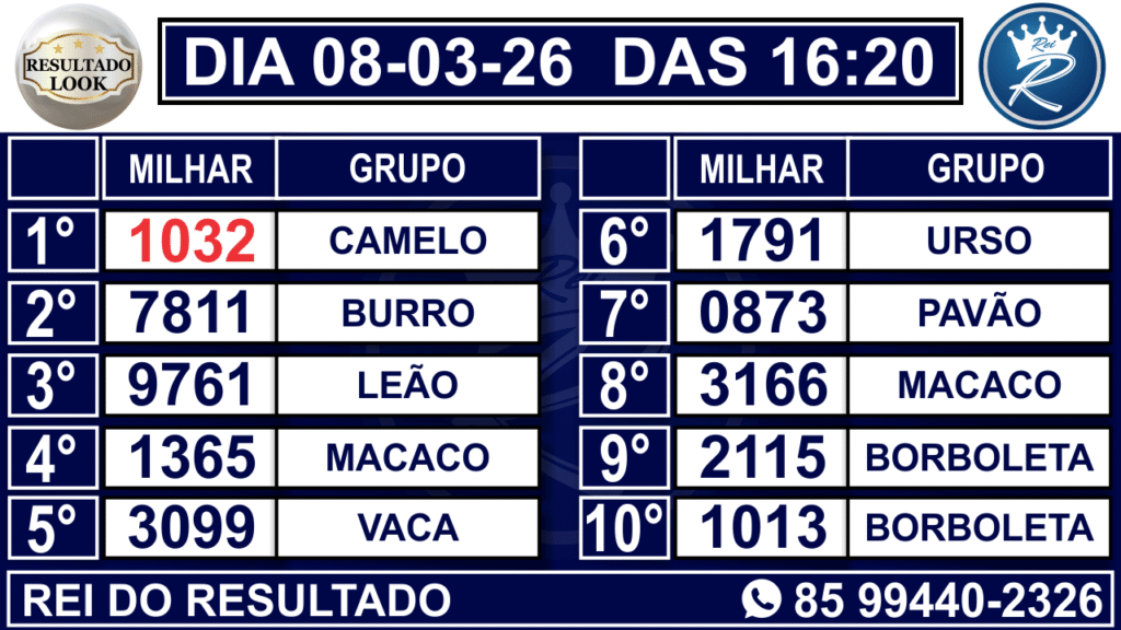 Aqui mesmo nesta página você encontra o resultado ao vivo de todos os horários citados acima. Aliás, para facilitar, organizamos os números de forma simples e objetiva. Portanto, sempre que precisar conferir sua aposta, basta acessar esta página inicial e visualizar os resultados em tempo real.